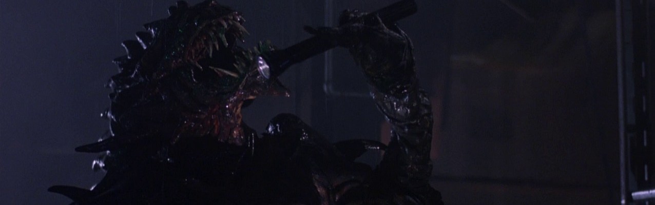 I’ve said it before and I’ll say it again: Fred Olen Ray has bloody good form when it comes to ‘man in a suit’-style monster flicks. As director, Biohazard (1985), Hybrid (1997), and his most recent contribution to the subgenre, Dire Wolf (2009), run the gamut from fun to fabulous; and the trifecta of rubber-heavy shockers that Ray produced — Evil Spawn (1987), Dark Universe (1993), and Biohazard: The Alien Force (1994) — are sterling entries in what is, arguably, the purest of horror disciplines. The second film Ray would helm in his two picture deal with Trans World following Commando Squad (1987), DEEP SPACE (1988) is another winner. Because despite suffering from post production tinkering, in terms of creature carnage, and in terms of sheer entertainment, Deep Space is a doozy.