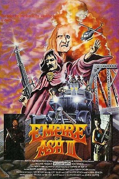Produced by Lloyd Simandl and John A. Curtis’ Vancouver-based North American Pictures, and directed by Simandl and Michael Mazo, raucous post-apocalyptic actioner Empire of Ash (1988) did decent enough business on video to warrant North American re-releasing it a year later. The catch? Simandl and Curtis elected to slap it back out as ‘Empire of Ash II’, rebranding it a sequel despite the fact it was the exact same film. To further muddy the waters, Empire of Ash/’Empire of Ash II’ hit US VHS via fellow B-movie maven David A. Prior’s Action International Pictures, who rechristened it ‘Maniac Warriors’. One film, three titles. So when Simandl and Curtis opted to assemble a genuine sequel alongside British maverick John Eyres following their pair-up on sluggish crime thriller Slow Burn (1989), they were left with no choice but to call their actual part two EMPIRE OF ASH III while Prior, who, again, snagged the film’s US tape rights, chose to keep it in line with his retitling and settled on ‘Last of the Warriors’. Got it? Good. Because it’s about to get a whole lot more confusing…