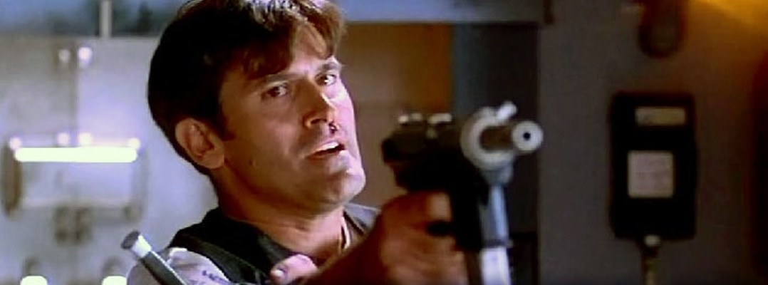And in regards to the latter, Chase Morran is anchored by a fabulous “and” turn from Bruce Campbell. Originally approached to play the eponymous John McClane-esque space cop, Campbell found the villain of the piece, psychotic terrorist Alex Windham, more appealing. As the Evil Dead (1981) icon explained in his 2001 memoir, If Chins Could Kill: