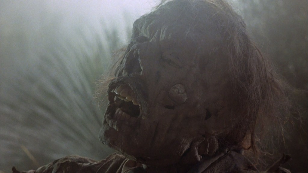 Heavily indebted to Prison and Catacombs‘ blend of mystery, spectacle and place, Ghost Town‘s simple narrative dovetails with them idea and beat-wise, but is completely bereft of the kind of intriguing subplots and compelling, nuanced characters that make Harlin and Schmoeller’s films so gripping. In fact, Ghost Town is often pretty tedious, and several scenes are so languidly paced that you can’t help but feel that they’ve been rendered that way to mask how thin the material is. Yet as Sandefur claims, that may be the result of him not having the time to rework Ghost Town from scratch; a point open to debate. After all, it’s clear that the scripter, the film’s crew, and the director eventually handed Ghost Town’s reins after Schmoeller left the project all have a wildly different opinion on the subject.