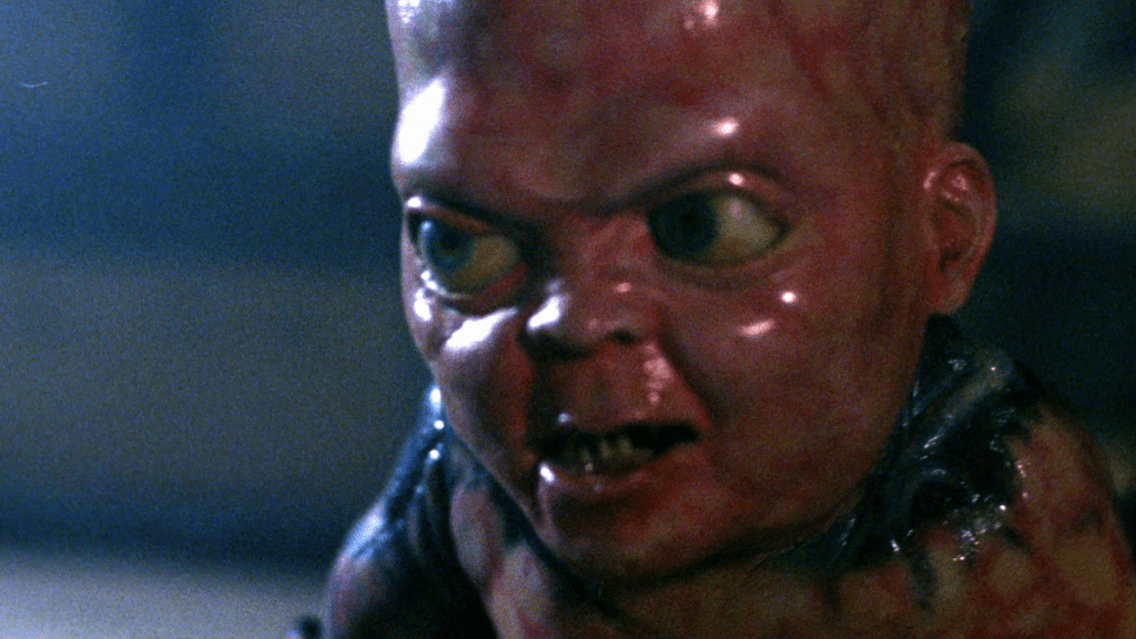 By the time the Cohen-tinged terror tot crawls from Zelda’s cranium during Creepozoids‘ closing stretch, teasing a sequel that sadly never happened, it’s thumpingly obvious that cherry picking from Alien was absolutely the right thing to do. Alien is the most structurally perfect film of its kind, and James Cameron’s barnstorming follow-up, Aliens (1986), is second. And had DeCoteau’s once-planned ‘Creepozoids II’ came to fruition, you can bet your bottom dollar Cameron’s adrenaline-pumping masterpiece would have been similarly – lovingly – pillaged.