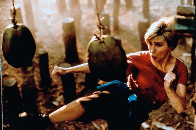 A skilled cinematographer-cum-writer-cum-director who’d cut his teeth on a wealth of XXX and drive-in favourites (the brilliant Poor Pretty Eddie (1975) among them), Worth was no stranger to star-driven chop socky shot on foreign soil. He’d lensed vintage Van Damme vehicle Bloodsport (1988) in Hong Kong and was summarily hired to helm the Muscles From Brussels’ next hard-hitting epic, Kickboxer (1989), over in Thailand. Naturally, both are plundered in Lady Dragon. Several scenes are essentially Rothrock-fronted riffs on Bloodsport/Kickboxer moments, the latter’s training montage getting the most obvious remix. The plot is basically a reheat too. Revenge, fortune cookie wisdom, pantomime bad guys (brought to life by Robert ‘The Exterminator (1980)’ Ginty and frequent Rothrock foil Richard Norton) — a few tweaks and Lady Dragon could have easily been a sequel or spin-off to either movie.