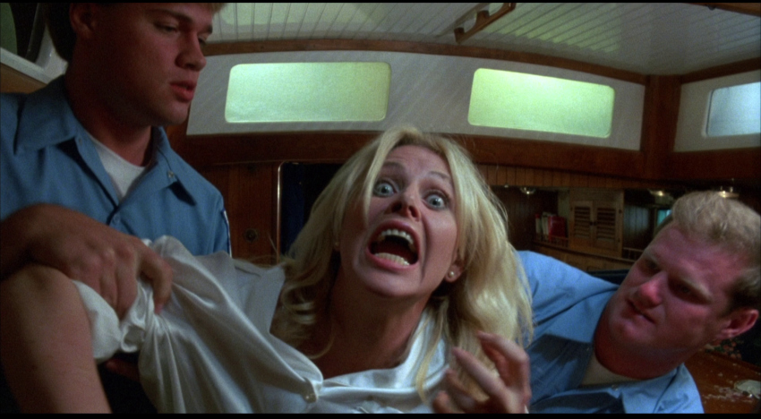 Per Ray, the film’s producer, Alan Amiel, struggled with the premise. Wanting clarity, Amiel badgered Trans World’s boss, Moshe Diamant, into a meeting and pitched him the synopsis. Diamant poo-pooed it, and demanded Moon in Scorpio become a straight slasher instead (“No! You make Halloween (1978). Halloween on a boat,goes the quote). Vexed, Graver rewrote the film to the mogul’s specifications and attempted to keep as many of Aiken’s ideas as possible. The rewritten script was shot, and Graver delivered his cut of the by-now already compromised picture.
