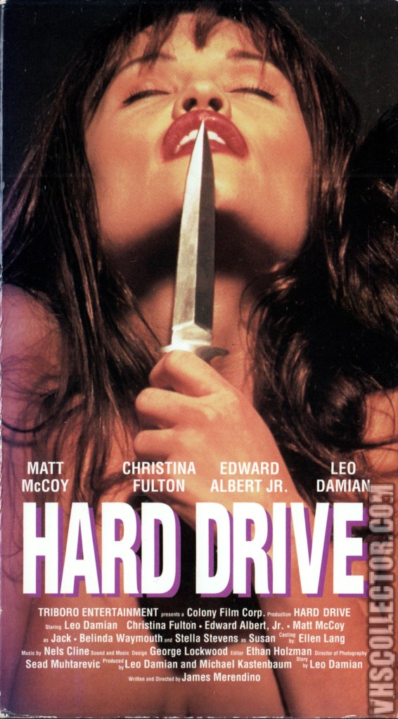 Shot in November 1992 and billed as a ‘techno-thriller’ by Stateside distro Triboro Entertainment Group, Hard Drive hit American rental stores in September ’94 in both R and unrated editions. A British tape followed six months later courtesy of First Independent, who subsequently paired it with Jim Wynorski’s equally nutty Sins of Desire (1993) as a double feature for the sell-through market.
