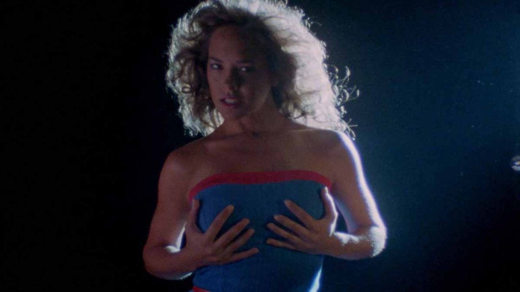 Lensed in five days, Deadly Embrace falters due to the usual quickie pratfalls, DeCoteau and otherwise. While the tiny schedule and minimal locations work to the film’s advantage, imbuing it with a tense, chamber piece quality, the shameless run time padding — specially, the terrible police interview framing device clearly acted by stand-ins, and Abraham and Quigley’s protracted, semi-improvisational phone calls — hinder forward momentum. Stylistically, Deadly Embrace is meat and potatoes, but there are a few quintessentially DeCoteauian flourishes here and there. The fantasy sequences (which include a boob-baring cameo from DeCoteau, Gabai and Quigley’s fellow Nightmare Sister, Michelle Bauer) are deliciously dreamy, and the studly Abraham — who’d teamed with DeCoteau and Quigley on Creepozoids (1987) — gyrating in bed and rubbing himself in the shower prefigure the bursts of twink-frot integral to Voodoo Academy (2000) et al.