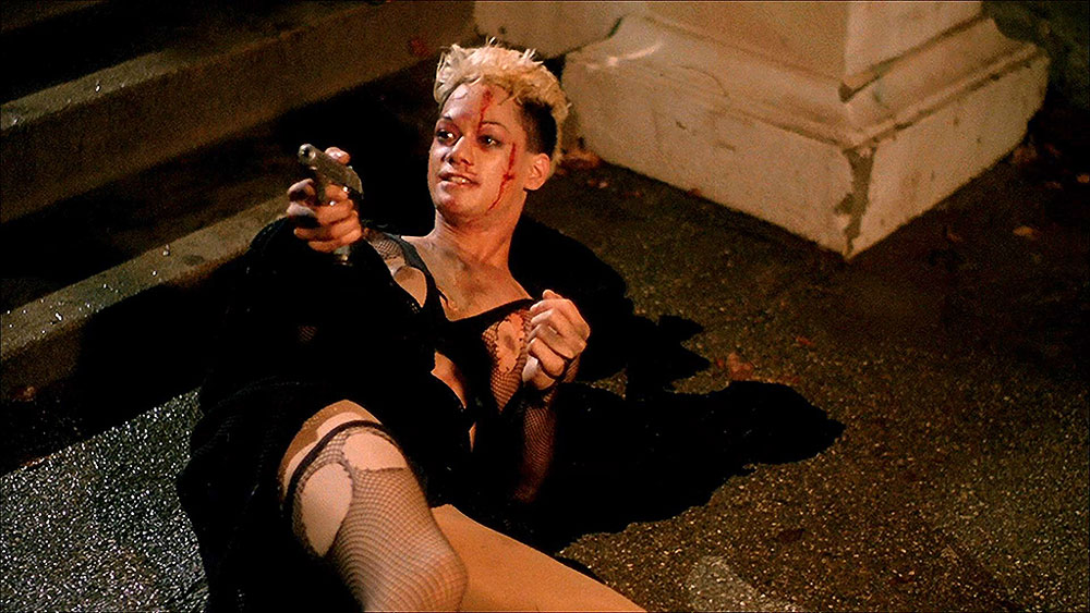 A visually arresting experience, Shea’s love for De Palma and Argento is obvious from Stripped to Kill’s opening strokes. Dripping with style, the film unspools in a peculiar heightened reality that’s part noir, part sleazoid nightmare. Bubbling with a dynamic yet purposefully uneasy colour palette, all icky earth tones, purples and – what else? – eye-popping deep reds, Shea juxtaposes the gritty luridity of the story – nasty murders taking place in and around a Skid Row strip club – with fanciful execution, imbuing Stripped to Kill with a succulent, almost fantastical edge; an approach she’d refine and wholly lean into across her next batch flicks, Dance of the Damned (1989), Streets (1990), and Stripped to Kill II: Live Girls (1989). With its designer violence, gender-bending hook, and emphasis on snazzy dance sequences (choreographed by Ted Lin), Stripped to Kill is, in essence, Dressed to Kill (1980) meets Suspiria (1977).