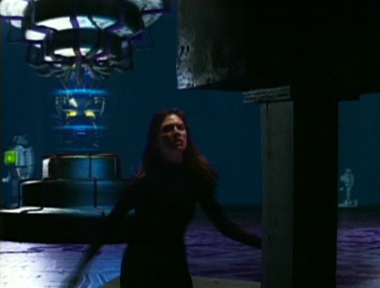 In any case, Arcade isn’t without interest. Aspects of Goyer’s convoluted script predate the Polybius myth — a post-internet urban legend concerning a mysterious video game with ties to the government and sinister conglomerates — and the narrative’s teen-footing calls to mind Pyun’s earlier school-based thriller, Dangerously Close (1986). Band-wise, Arcade is ostensibly a ‘90s update of his 1984 fantasy portmanteau, The Dungeonmaster. Quest-oriented in terms of plot mechanics, in The Dungeonmaster Jeffrey Byron has to save his beloved from the clutches of the titular wizard through a series of challenges; in Arcade the aforementioned Megan Ward has to save her pals from the eponymous diabolical game cabinet in much the same way. And where The Dungeonmaster exploited its era’s thirst for RPGs and swords and sorcery (winky face), Arcade taps into its decade’s growing obsession with VR and cyberspace (cf. The Lawnmower Man (1992), Virtuosity (1995), Johnny Mnemonic (1995), eXistenZ (1999), The Matrix (1999)) [4].